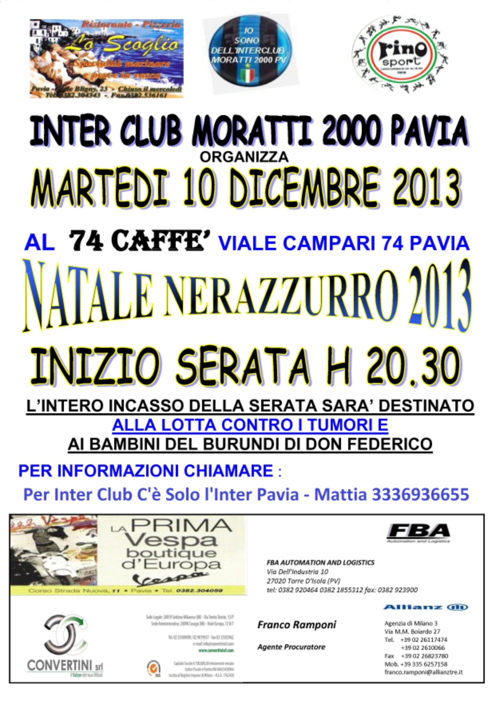 Ci uniamo agli amici dell’ Inter club Moratti 2000 per una serata di festeggiamenti in vista del prossimo Natale e anche occasione di beneficenza.