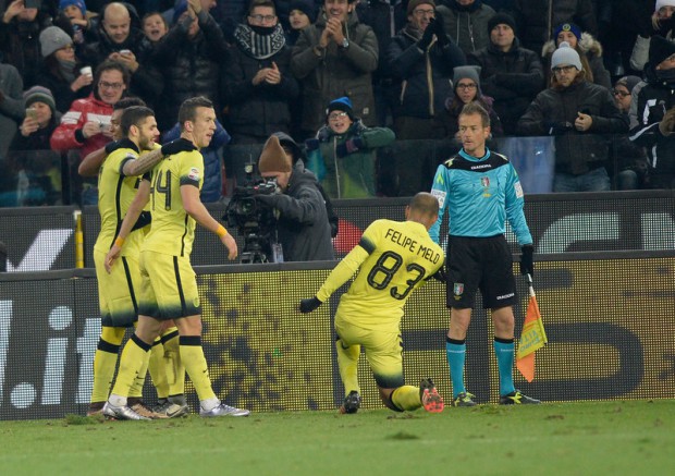 IMPLACABILE – L’Inter di Roberto Mancini soffre in una partita complicata, viene messa sotto a tratti nel primo tempo dall’Udinese, ma è una squadra solida e chiude i primi 45′ in vantaggio per 2-0. Il tecnico nerazzurro ha saputo plasmare una squadra capace di soffrire e che in trasferta vola. La sua Inter ha vinto cinque volte lontano da San Siro: nessuno ha fatto meglio. I nerazzurri quindi fuggono, almeno per una notte, ma il messaggio lanciato da Udine è chiaro: l’Inter c’è ed implacabile.