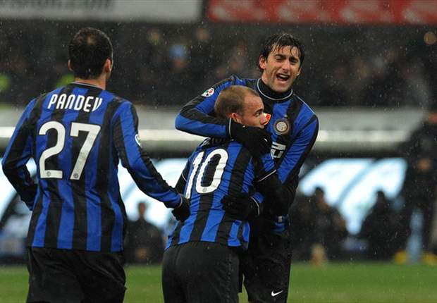 INCREDIBILE SECONDO TEMPO- La ripresa si aprì inevitabilmente con l’Inter alla ricerca del vantaggio perduto ma incredibilmente si ritrovò di nuovo sotto grazie a un’altra rete di Maccarone. Col Siena in vantaggio per 3-2 e coi minuti che passavano, sembrava prendere forma l’incubo della prima sconfitta casalinga della gestione Mourinho, ma i più pessimisti non avevano fatto i conti con la proverbiale “pazzia” interista e con l’immenso carattere di quella squadra. Siamo all’88° e Wesley Sneijder sta per battere un calcio di punizione in posizione centrale, a 35 metri circa dalla porta difesa da Curci: impossibile per tutti, o quasi, non per l’olandese, non in quella stagione. Il destro del numero 10 è una saetta che sbatte sul palo e si infila in rete, 3-3 e tutto un recupero da giocare con Mourinho che ordina l’assalto finale, sposta Walter Samuel dal suo fortino della difesa e lo manda in attacco ed è proprio il difensore argentino a incendiare il Meazza con un’azione degna del più navigato dei centravanti: si posizione sulla linea dei difensori del Siena, raccoglie sul filo del fuorigioco un filtrante di Pandev e scaglia in rete il pallone del 4-3 con un sinistro secco a spiazzare Curci, Giuseppe Meazza in delirio, Inter in delirio, Mourinho esulta come se il gol l’avesse fatto lui, Samuel si toglie la maglia e rimane a torso nudo nel gelo del Meazza. Finisce così, con l’Inter che conquista 3 punti preziosissimi e da un’ulteriore dimostrazione della sua forza in quella stagione magica, non a caso conclusa con il Triplete.