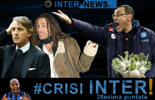 Venticinquesimo appuntamento della rubrica ironica “Crisi Inter”, dopo la vittoria in casa del Napoli che decreta il passaggio in semifinale di Tim Cup. Nonostante il risultato del campo, a far discutere è il coming out forzato di Mancini, che viene smascherato dal collega Sarri. E c’è un retroscena: a svelarlo ci pensa il cantautore Povia. Nella bolgia riappare anche Moggi