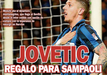 ED – Jovetic, regalo per Sampaoli. Al Siviglia in prestito con diritto di riscatto Il futuro di Jovetic sembra essere al Siviglia. L’attaccante dell’Inter dovrebbe trasferirsi in Spagna e l’accordo sembra essere stato raggiunto. Sulla prima pagina di Estadio Deportivo si legge: “Jovetic, regalo per Sampaoli. Monchi vicino all’attaccante montenegrino, che arriva al Siviglia dall’Inter in prestito con diritto di riscatto con la speranza di risorgere in Spagna”. The post ED – Jovetic, regalo per Sampaoli. Al Siviglia in prestito con diritto di riscatto appeared first on FC Inter 1908. via FC Inter 1908 http://ift.tt/2iXbxis from Inter Club C’è solo l’Inter Pavia http://ift.tt/2hX0iJW