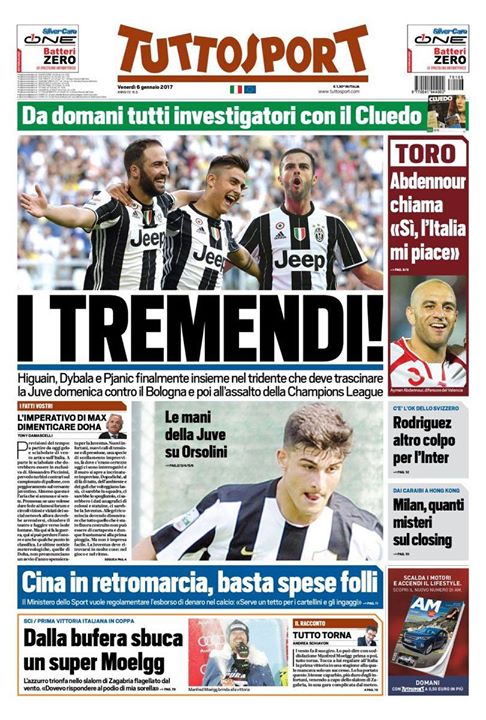 EDICOLA TS – Cina in retromarcia. Il Ministero dello Sport interviene sull’esbordo di denaro La prima pagina di TuttoSport titola sulle follie nel calcio cinese nell’ultimo anno. Secondo il quotidiano sportivo, il Ministero dello Sport interverrà per regolarizzare i trasferimenti futuri: “Cina in retromarcia, basta spese folli. Il Ministero dello Sport vuole regolamentare l’esborso del denaro nel calcio: “Serve un tetto per i cartellini e gli ingaggi”” si legge in taglio basso. -Bernardeschi all’Inter è il sogno di Suning. Zhang Sr pensa alla mossa definitiva… [fncvideo id=802005] The post EDICOLA TS – Cina in retromarcia. Il Ministero dello Sport interviene sull’esbordo di denaro appeared first on FC Inter 1908. via FC Inter 1908 http://ift.tt/2iJHH16 from Inter Club C’è solo l’Inter Pavia http://ift.tt/2iGSc7t