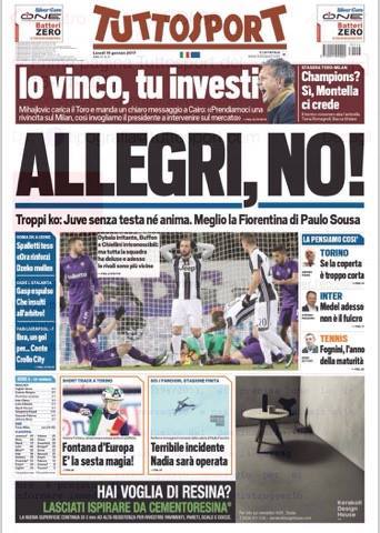 EDICOLA TS – Inter, Medel adesso non è il fulcro Tuttosport dedica molto spazio alla Juventus e alla sconfitta dei bianconeri contro la Fiorentina nella gara giocata al Franchi. “Allegri, no!”, il titolo principale della testata sportiva, che però dà spazio anche al positivo momento dell’Inter, reduce da cinque vittorie consecutive. La visione di Tuttosport si incentra soprattutto su Medel, prima fondamentale nel gioco e negli equilibri della squadra, ora meno dipendente dalla forma del centrocampista cileno, fuori dalla partita contro il Milan: “Inter, Medel adesso non è il fulcro”, titola il giornale. (Fonte: Tuttosport) [fncvideo id=810519] The post EDICOLA TS – Inter, Medel adesso non è il fulcro appeared first on FC Inter 1908. via FC Inter 1908 http://ift.tt/2jmw0jt from Inter Club C’è solo l’Inter Pavia http://ift.tt/2ivsX4g