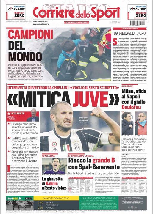 Edicola CdS – Kalinic dice no ai milioni cinesi. Sarri non firma per il secondo posto L’edizione odierna del Corriere dello Sport si concentra sulla gara tra Milan e Napoli e sul giallo relativo alla trattativa Deulofeu, (precocemente annunciato dai rossoneri), che ha suscitato la rabbia degli inglesi: “I rossoneri annunciano l’arrivo dello spagnolo, l’Everton si infuria. Sarri: “Non firmo per il secondo posto”. Intanto da Firenze, Kalinic dice no ai milioni provenienti dalla Cina: «Resto Viola»”. The post Edicola CdS – Kalinic dice no ai milioni cinesi. Sarri non firma per il secondo posto appeared first on FC Inter 1908. via FC Inter 1908 http://ift.tt/2iUFu1q from Inter Club C’è solo l’Inter Pavia http://ift.tt/2jJkFdz