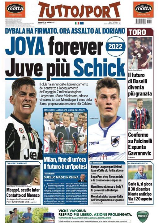 EDICOLA TS – Juve più Schick: per il doriano, Marotta prepara un’operazione alla Caldara Tanto mercato sulla prima pagina di Tuttosport. Secondo il quotidiano sportivo, le strade della Juventus potrebbero presto intrecciarsi con quelle dell’Inter. Perché Patrik Schick è un nome che piace anche ai bianconeri, pronti a inserirsi fra l’attaccante della Sampdoria e i nerazzurri. Titola Tuttosport: “Juve più Schick: Dybala ha firmato, ora assalto al doriano. Marotta per il ceco della Sampdoria prepara un’operazione alla Caldara“. (Fonte: Tuttosport) The post EDICOLA TS – Juve più Schick: per il doriano, Marotta prepara un’operazione alla Caldara appeared first on FC Inter 1908. via FC Inter 1908 http://ift.tt/2pbXOu7 from Inter Club C’è solo l’Inter Pavia http://ift.tt/2pelRW8