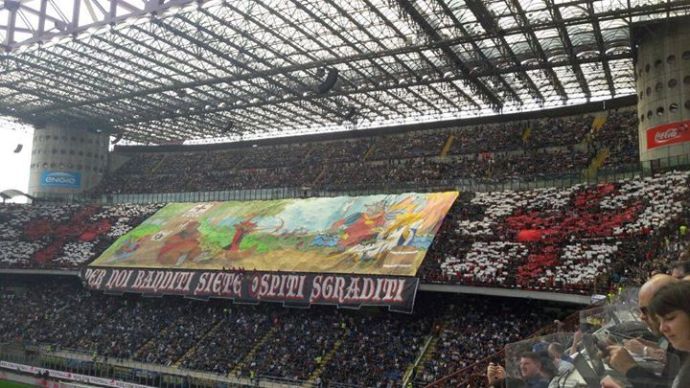 FOTO Curva Sud: “Ogni città il suo guaio ha. Per noi banditi ospiti sgraditi” “Ogni città il suo guaio ha…” e “Per noi banditi siete ospiti sgraditi”, gli striscioni esposti dalla Curva Sud in occasione del derby di quest’oggi. La coreografia riprende i personaggi del film d’animazione Disney su Robin Hood. Ecco le immagini: (Dagli inviati di FcInter1908.it Eva A. Provenzano e Andrea Della Sala) The post FOTO Curva Sud: “Ogni città il suo guaio ha. Per noi banditi ospiti sgraditi” appeared first on FC Inter 1908. via FC Inter 1908 http://ift.tt/2oBGhKD from Inter Club C’è solo l’Inter Pavia http://ift.tt/2oBar0m