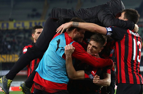 +4 PRIMA DEL DERBY – Chievo-Milan 1-2 nell’anticipo serale della ventisettesima giornata di Serie A. Mezz’ora con pochi spunti, poi l’arbitro Luca Pairetto giudica falloso un contrasto fra Paquetà e Mehdi Léris, dove in realtà sembra essere il brasiliano a calciare il piede del giocatore del Chievo e non il contrario: dai venti metri Lucas Biglia è perfetto a piazzarla nel sette, primo gol stagionale e Milan in vantaggio. Dura solo dieci minuti lo 0-1, al 41′ cross dalla destra proprio di Léris e colpo di testa vincente di Perparim Hetemaj, dimenticato da Andrea Conti. Il Milan non è in una gran serata ma, come troppo spesso accade in questo periodo, sfrutta ancora una mano da parte di arbitro e VAR, che giudicano regolare una rovesciata di Krzysztof Piatek che prende in pieno Fabio Depaoli, con il polacco che sul proseguimento dell’azione corregge in rete una sponda di Samu Castillejo. Rossoneri alla quinta vittoria consecutiva in campionato e a +4 sull’Inter quarta una settimana prima del derby, Chievo ormai destinato alla retrocessione. Di seguito il video con la sintesi di Chievo-Milan dal canale ufficiale YouTube della Lega Serie A.