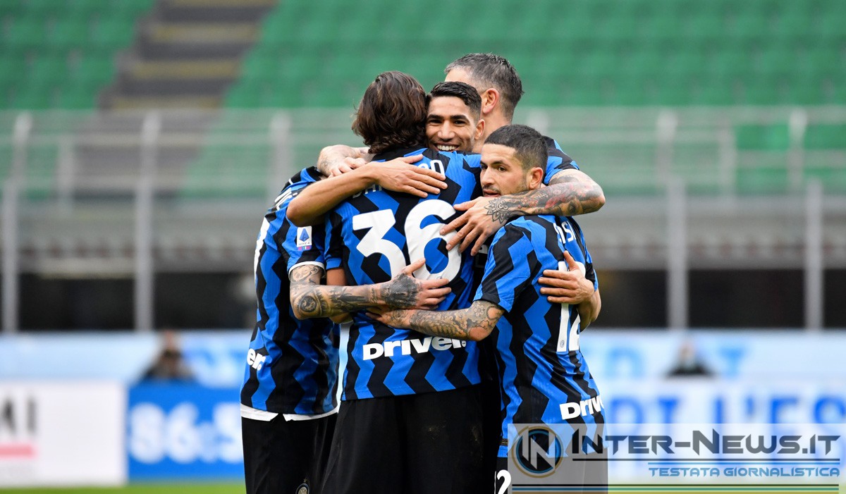 DECISIVO – Achraf Hakimi, solita freccia sulla corsia di destra. Migliorato anche in fase difensiva, in attacco è sempre uno dei più imprevedibile: già a quota cinque gol in questa stagione, anche oggi il suo nome appare nel tabellino della partita, festeggia con Lautaro Martinez e il resto del gruppo appena dietro.
